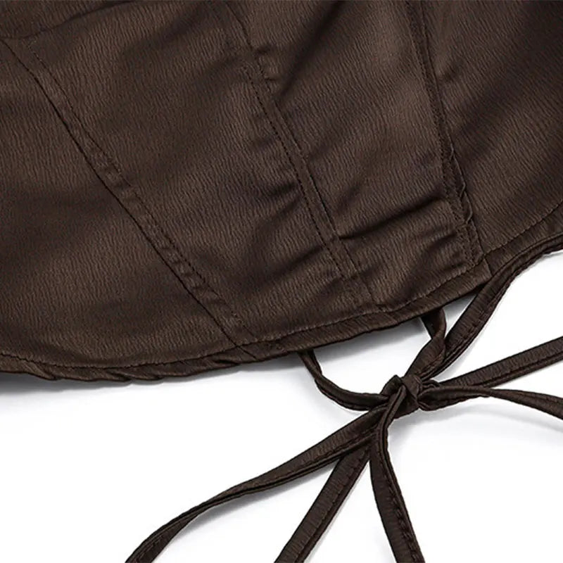 Designed with a smooth, structured finish, this piece features a corset-inspired bodice that enhances your natural shape while maintaining comfort. The clean, strap neckline keeps it sleek and versatile, while the lace-up back detail adds a subtle statement and adjustable fit.