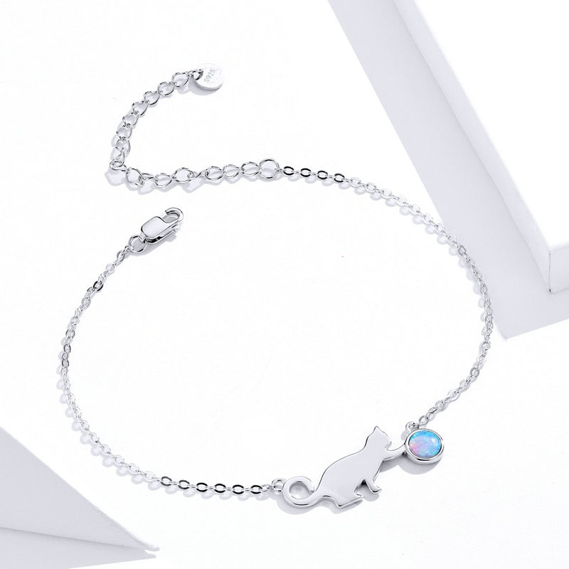 BAMOER U Authentic 925 Sterling Silver Cute Pussy Cat Opal Link Bracelet for Women Luxury Fine Jewelry Female Gifts SCB175