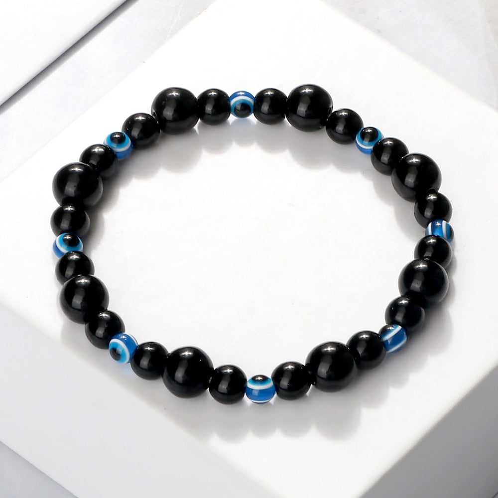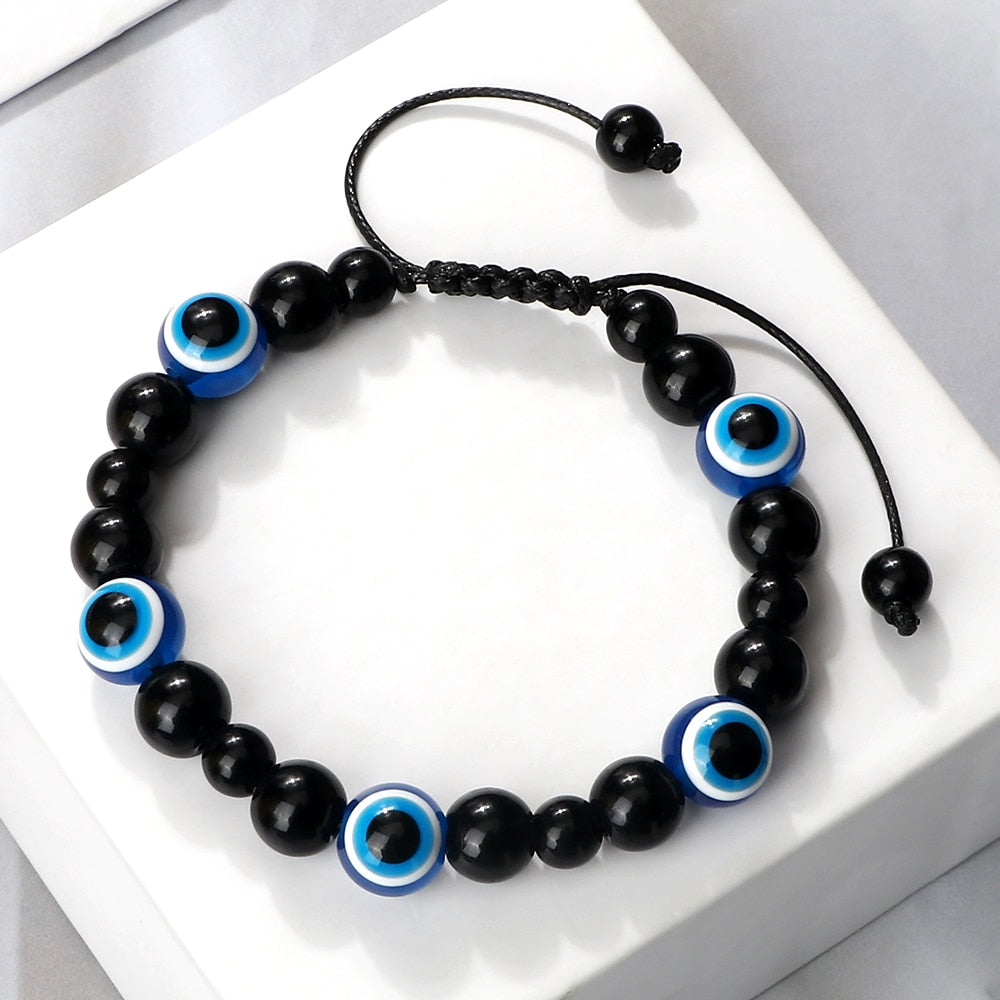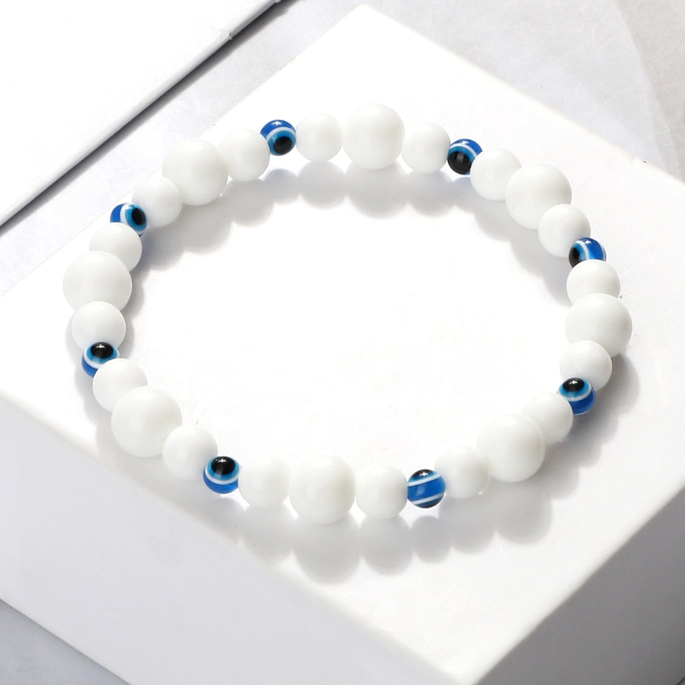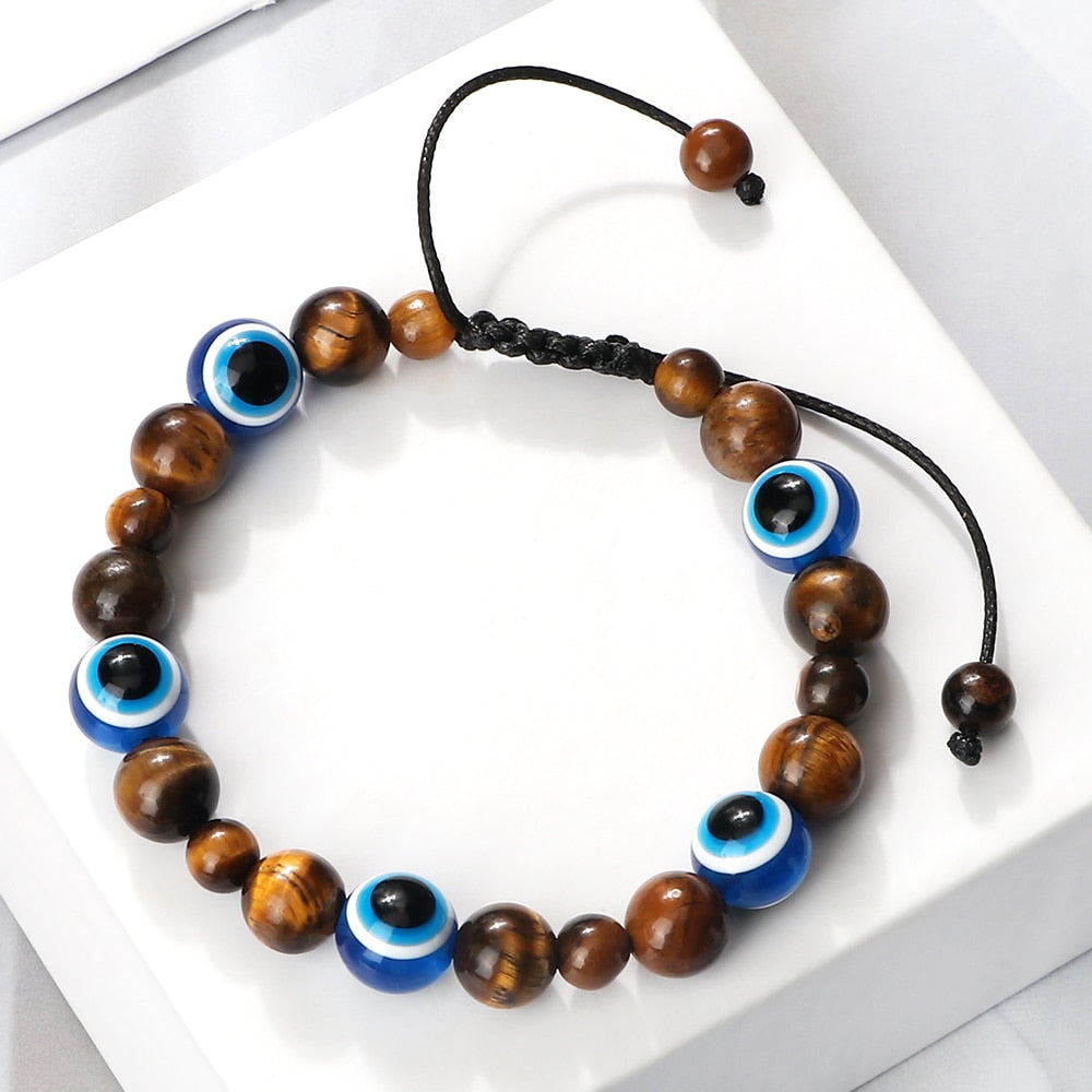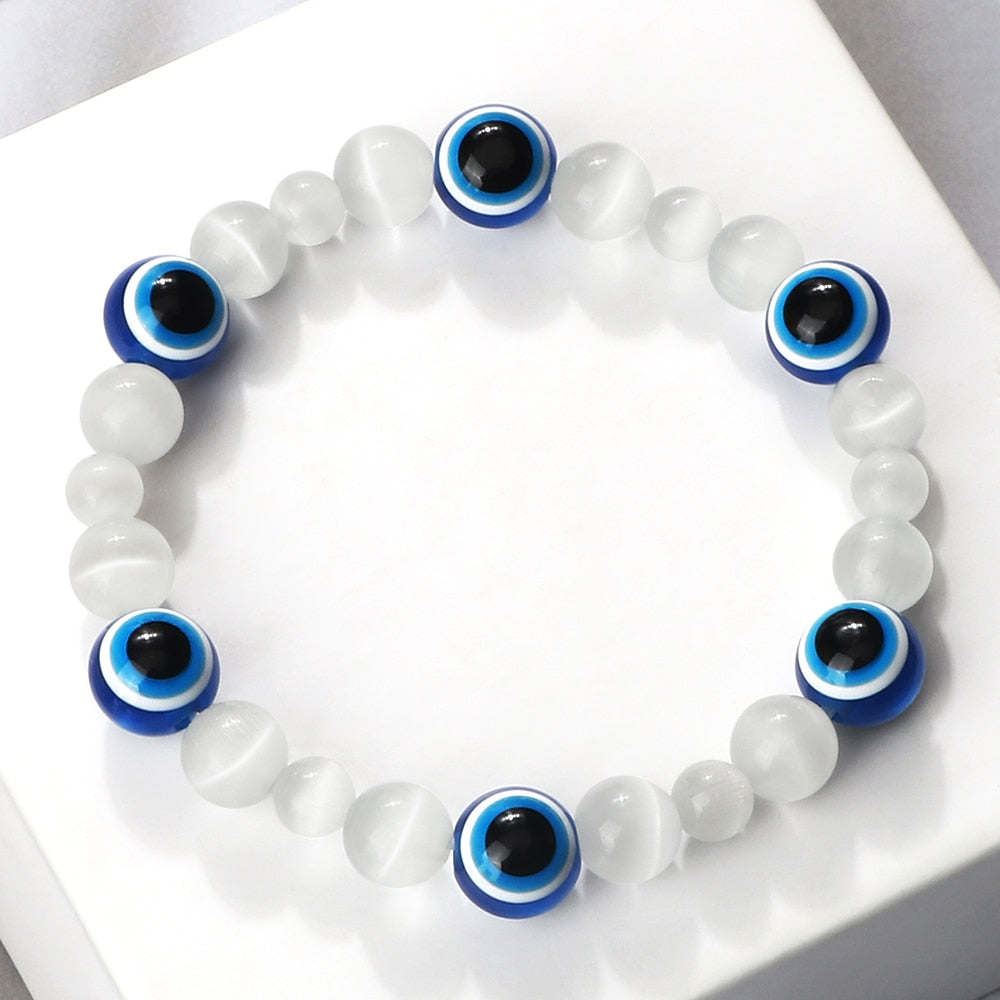 This Blue Evil Eye Beaded Bracelet is made from natural cat eye stones with a diameter of 6 to 8mm and opal accents. It is an adjustable bangle that can be worn by both men and women, making it a perfect gift for anyone who loves lucky and yoga jewelry. The blue evil eye symbol is said to bring protection and good luck to the wearer, making this bracelet an ideal accessory for those who believe in its power. The adjustable design makes it easy to wear and comfortable for all wrist sizes, making it a versatile piece of jewelry. Whether you're looking to add a pop of color to your outfit or simply seeking protection, this bracelet is the perfect choice.