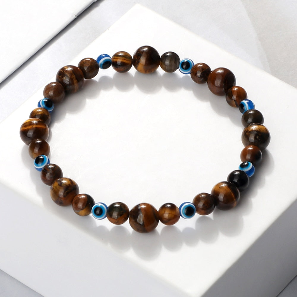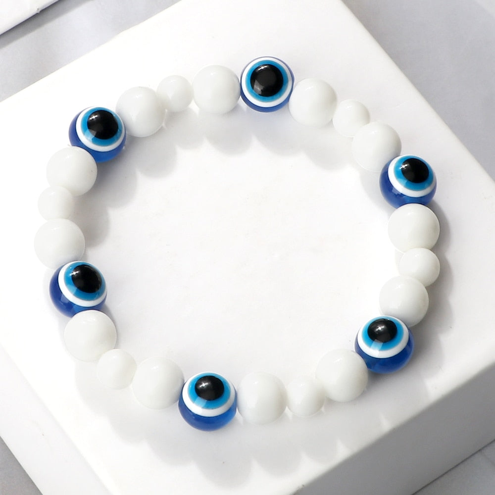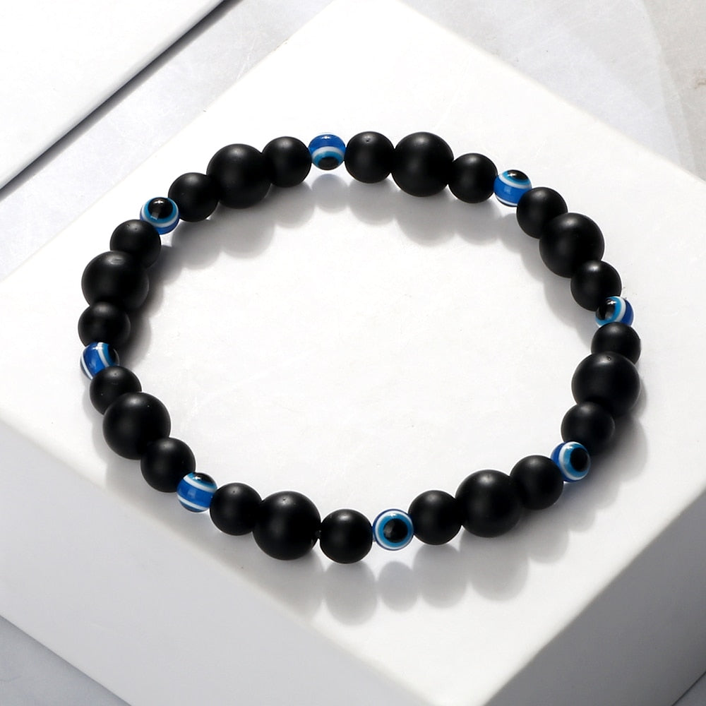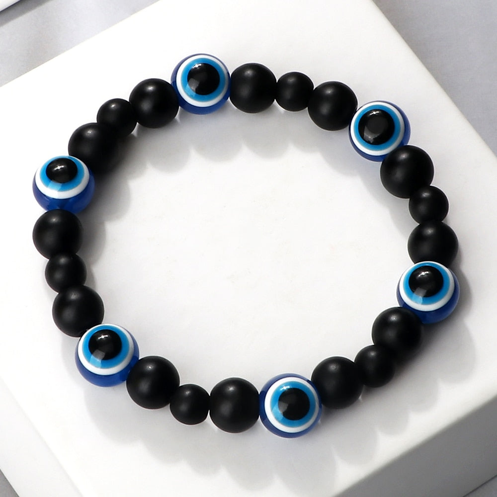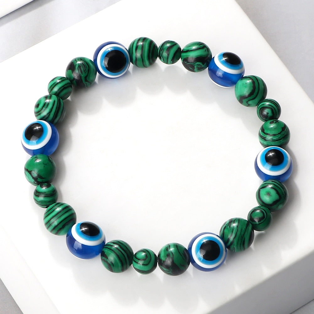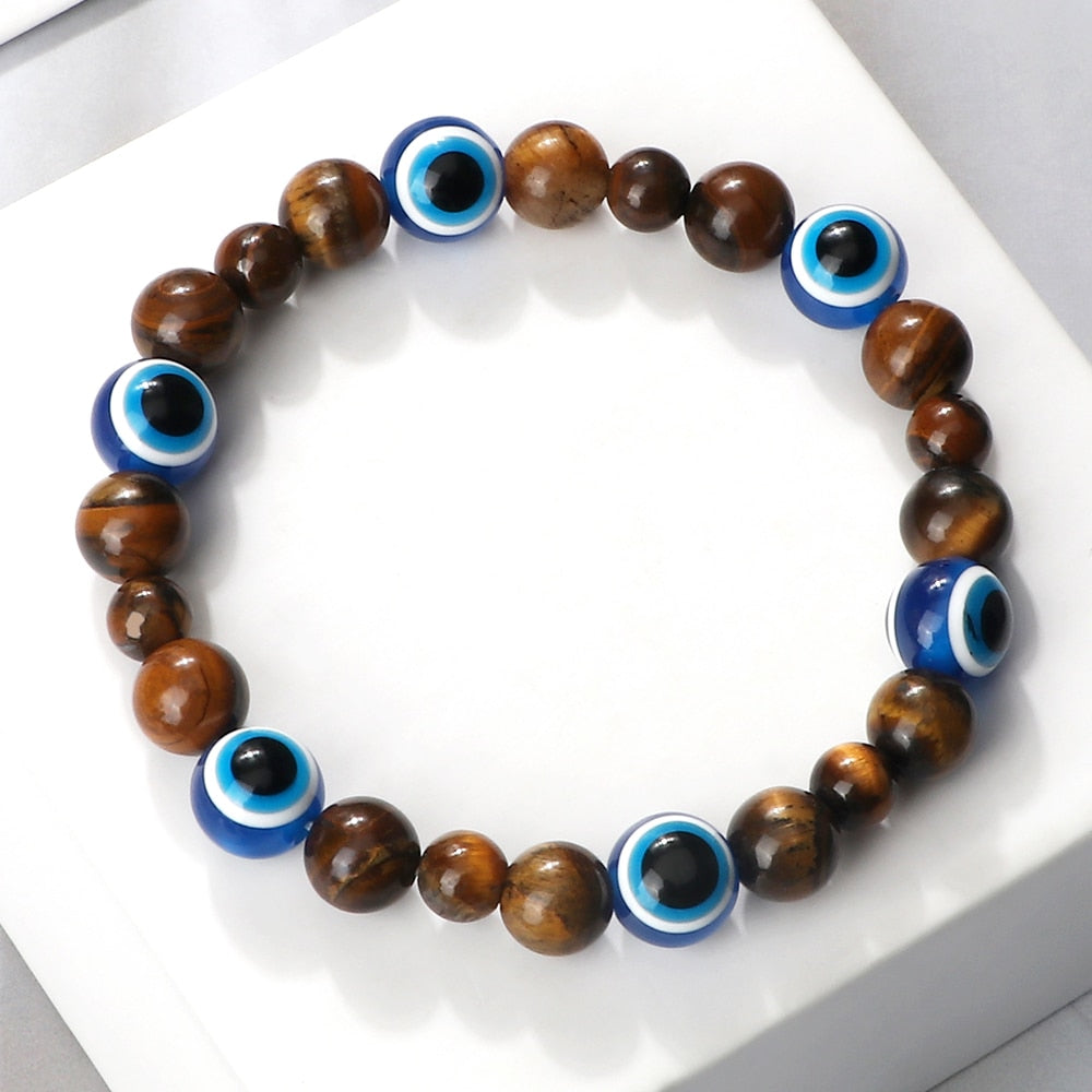 This Blue Evil Eye Beaded Bracelet is made from natural cat eye stones with a diameter of 6 to 8mm and opal accents. It is an adjustable bangle that can be worn by both men and women, making it a perfect gift for anyone who loves lucky and yoga jewelry. The blue evil eye symbol is said to bring protection and good luck to the wearer, making this bracelet an ideal accessory for those who believe in its power. The adjustable design makes it easy to wear and comfortable for all wrist sizes, making it a versatile piece of jewelry. Whether you're looking to add a pop of color to your outfit or simply seeking protection, this bracelet is the perfect choice.