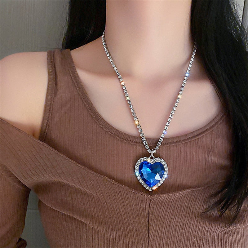 The Blue Heart Crystal Necklace Long Chain Pendant Necklace is perfect for adding a touch of elegance and sophistication to any outfit. It can be worn with a variety of outfits, including dresses, blouses, and tops, and is perfect for special occasions such as weddings, proms, and other formal events.