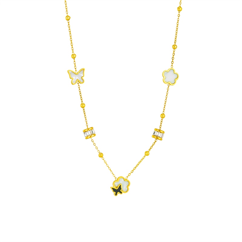 A Butterfly Flower Pendant Necklace is a beautiful and feminine piece of jewelry that features a delicate chain and a stunning butterfly and flower pendant. The pendant is designed with intricate details, featuring a butterfly with delicate wings and a flower with petals in full bloom. The combination of the butterfly and flower design creates a charming and romantic look that is perfect for adding a touch of nature to any outfit. The delicate chain and lightweight pendant make it a comfortable piece of jewelry to wear all day. The adjustable length of the necklace allows it to be worn comfortably, making it a versatile and practical accessory for any jewelry collection. Whether you're looking for a simple and stylish accessory or a unique and eye-catching piece of jewelry, this butterfly flower pendant necklace is sure to become a treasured part of any jewelry collection.