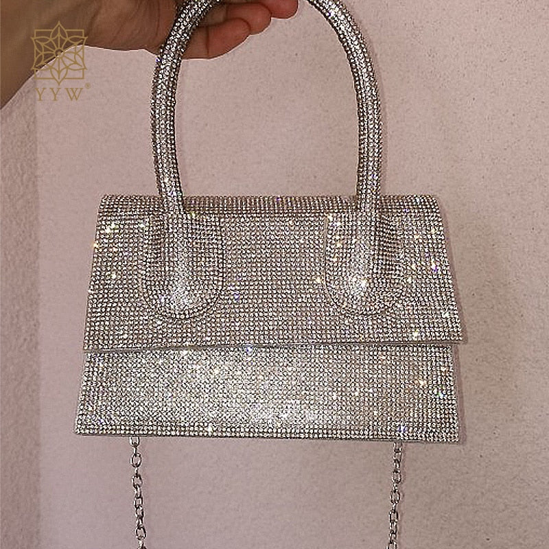 The Chic Diamonds Top-handle Shape Small Hand Bags are a fashionable and versatile accessory designed for women. These bags are made of high-quality materials and feature a glittering bling design that adds a touch of elegance and sophistication to any outfit.
