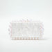 The Clear Acrylic Box Bag with Gold Foil Beads is a stylish and modern accessory that is perfect for adding a touch of sophistication to any outfit. The bag is made from high-quality, clear acrylic material that provides a unique, see-through effect that is both modern and elegant.