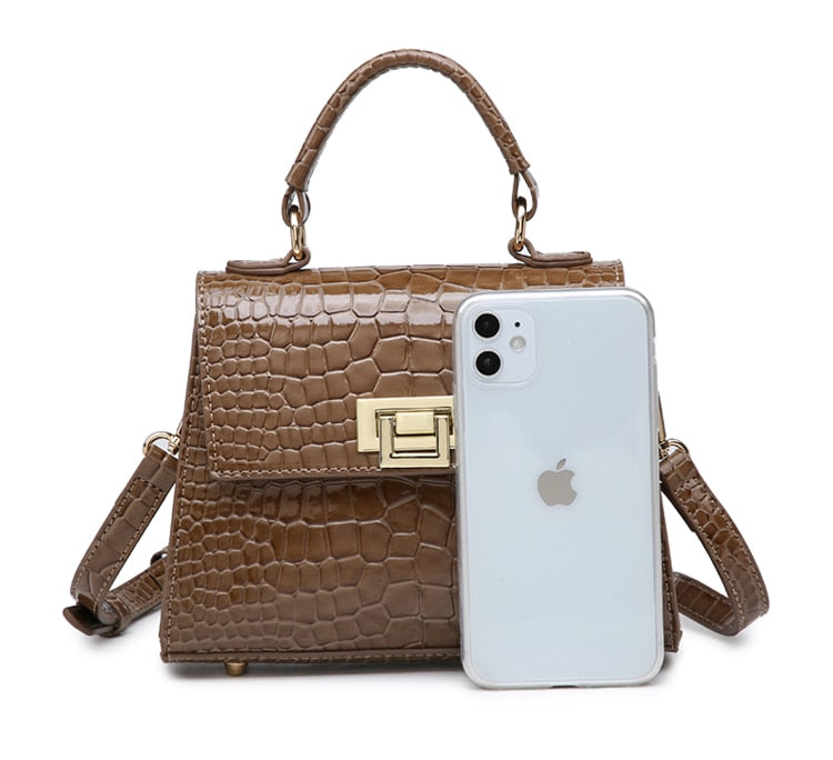 The bag is made from high-quality crocodile-patterned leather, which adds a touch of sophistication and class to the design. The bag features a small and compact size, making it ideal for carrying your essentials, such as your phone, wallet, and keys.