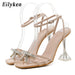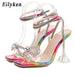 Eilyken Women Gladiator Sandals shoes Sexy White String Bead high heels Sandals Summer Party Dress shoes Buckles pumps size 42