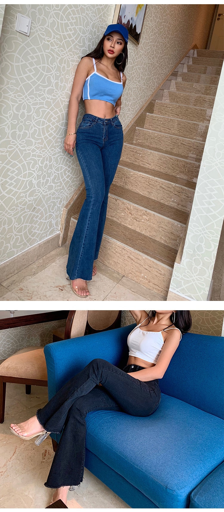 The Flare Wide Legs Jeans Pants are a stylish and comfortable clothing item that features a vintage-inspired design. Made from high-quality denim, these jeans have a classic blue color and a flared leg cut that creates a flattering silhouette. The high waist design of the jeans adds an element of sophistication to the overall look, and also provides a comfortable and secure fit. The jeans are designed to be stretchy, ensuring that they move with you and provide maximum comfort throughout the day. The jeans also feature pockets, which adds a practical element to the pants, while also creating a casual and laid-back vibe. These jeans are perfect for those who want a comfortable and stylish pair of pants that can be worn in a variety of settings. The vintage-inspired design and high waist cut of these jeans make them a versatile addition to any wardrobe, and they can be paired with a range of tops and accessories to create a variety of different looks.