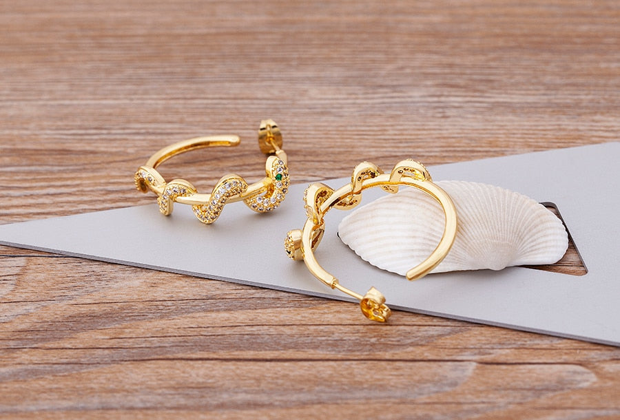 The large gold-colored circle is the centerpiece of the earrings, and it gives them a classic and sophisticated touch. The snake twisted round design adds a playful and edgy vibe to the earrings, making them perfect for anyone who loves bold and unique accessories.