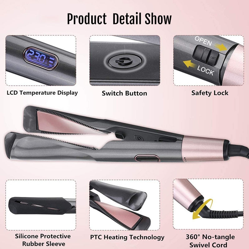 The Hair Curler - Straightener 2 in 1, Spiral Wave Curling Iron, Professional Hair Straighteners is a versatile styling tool that combines a hair curler and a straightener in one. This tool is designed to help you create a variety of styles, from sleek and straight to bouncy and curly.