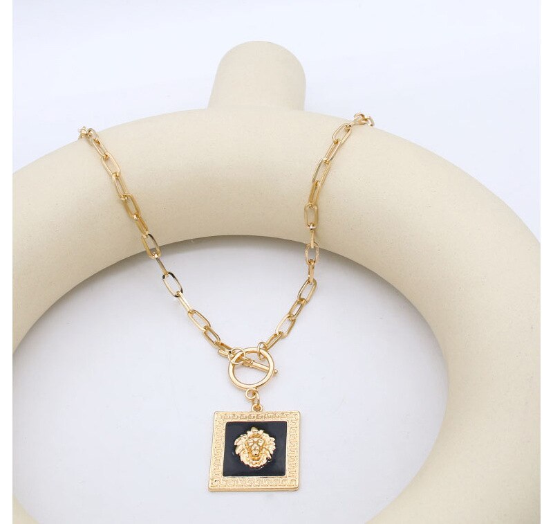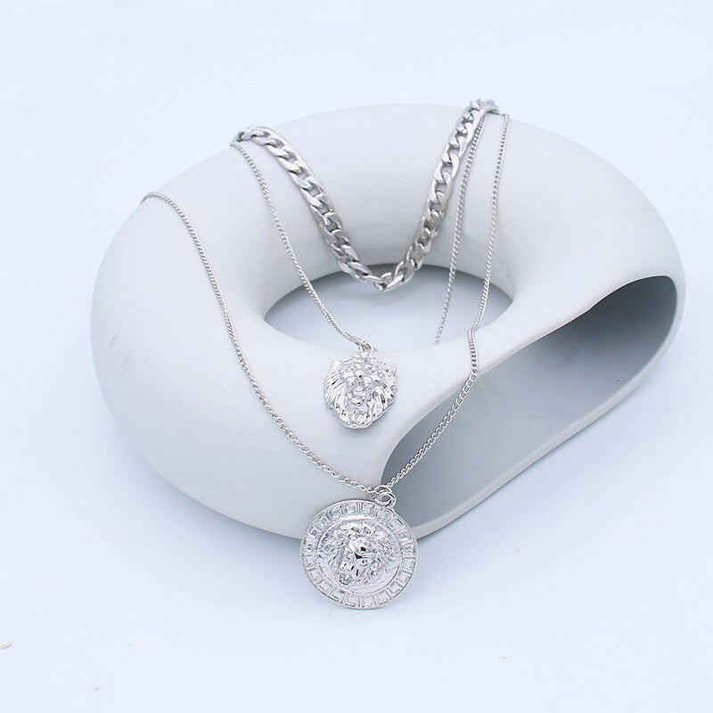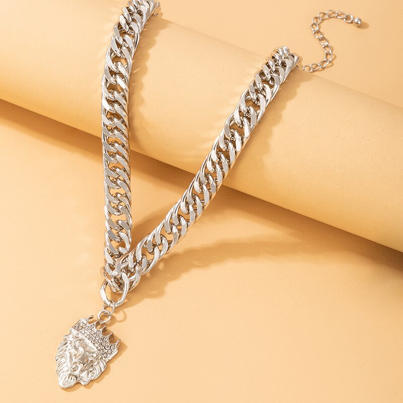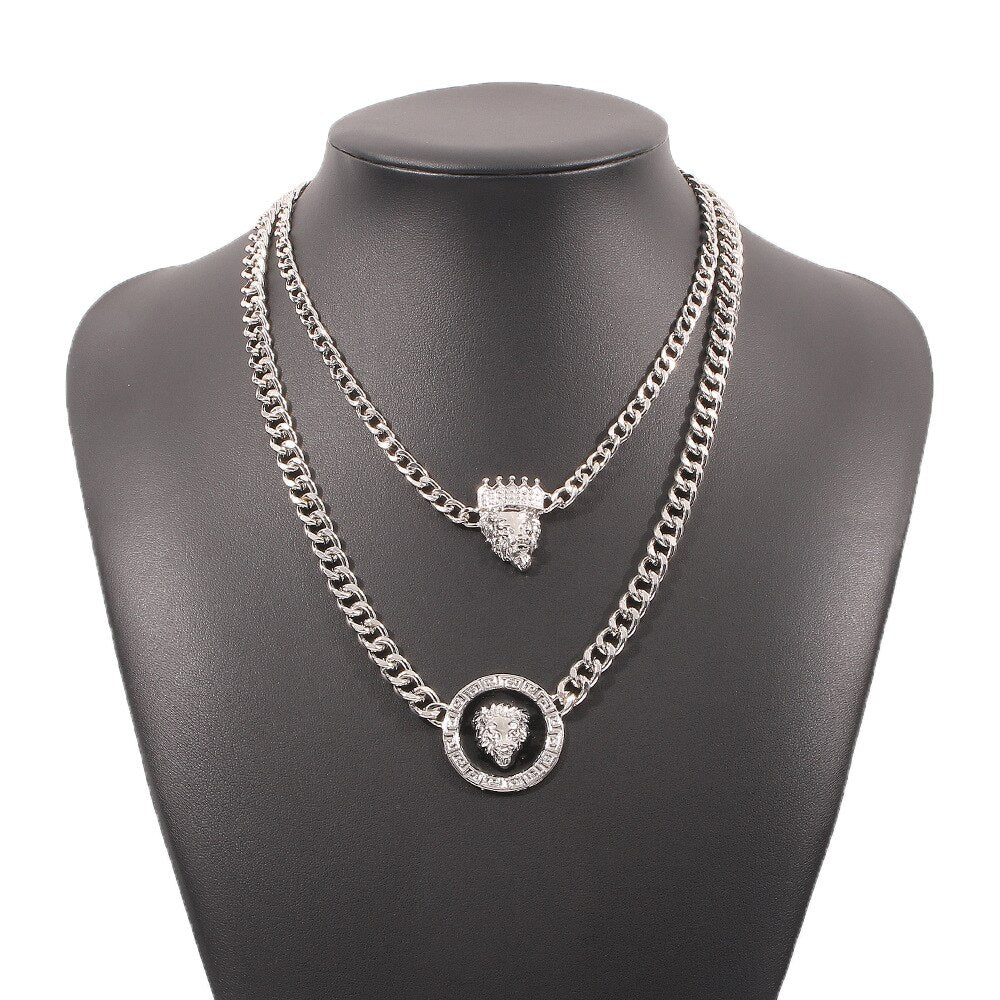 Hip Hop Heavy Metal Mens Necklace Lion Head Pendant Geometric Chain Necklaces for Women Party Choker Birthday Punk Rock Jewelry