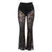 InsGoth Goth Aesthetic Black Flared Pants Harajuku Sexy See Through Women Trousers Punk Grunge High Waist Cosplay Summer Pants