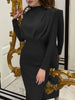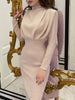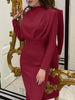 InstaHot Elegant Women Dress Stand Collar Slim Waist Solid Blue Ankle Length Autumn Long Sleeve Casual Party Dress 2020 Fashion