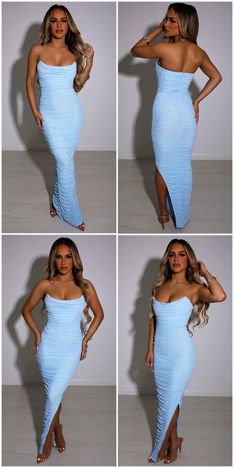 The Mesh Sexy Robe Strapless Backless Sleeveless Split Dress is a unique and daring piece of lingerie that is sure to turn heads. The dress is made of a sheer mesh material that gives it a seductive and revealing appearance, while still providing enough coverage to be worn as a cover-up. It features a strapless design, with a backless cut that is sure to showcase your best assets. The sleeveless style and split design add an extra touch of sexiness, making it perfect for a special occasion or a romantic night in. This dress is available in a variety of sizes, making it suitable for women of all shapes and sizes. Whether you want to feel confident and comfortable, or want to surprise your partner with something extra special, the Mesh Sexy Robe Strapless Backless Sleeveless Split Dress is a great choice.