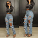 Introducing Olivia's Distressed Denim, the perfect addition to any fashion-forward woman's wardrobe. These vintage-inspired baggy pants feature a stylishly ripped design, with destroyed holes and a broken finish for an edgy, on-trend look. Made from a comfortable blend of cotton and spandex, these pants have a slight stretch for a flattering fit. Whether you're dressing up for a night out or keeping it casual with a t-shirt and sneakers, Olivia's Distressed Denim is sure to make a statement. Upgrade your style game today with these designer jeans from our online women's fashion store.