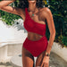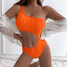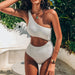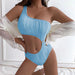 The Rib One Shoulder Swimwear One Piece Swimsuit High Waist Bathing Suit Cut-out Beachwear is a one-piece swimsuit designed for women. The swimsuit is made from ribbed fabric, which has a textured appearance and a stretchy, form-fitting quality. The swimsuit features a single shoulder strap, creating a unique and trendy asymmetrical look. The high waist design of the bathing suit helps to accentuate the natural curves of the body, while providing additional coverage around the midsection. The cut-out detailing on the sides of the swimsuit adds a touch of sexiness and style, revealing a bit of skin without being too revealing. This one-piece swimsuit is perfect for a day at the beach or pool, as it provides both comfort and style. The ribbed fabric adds a touch of texture and interest, while the cut-out detailing and asymmetrical shoulder strap make it a standout piece. Overall, this swimsuit is a great option for those who want to look fashionable and unique on the beach or by the pool.