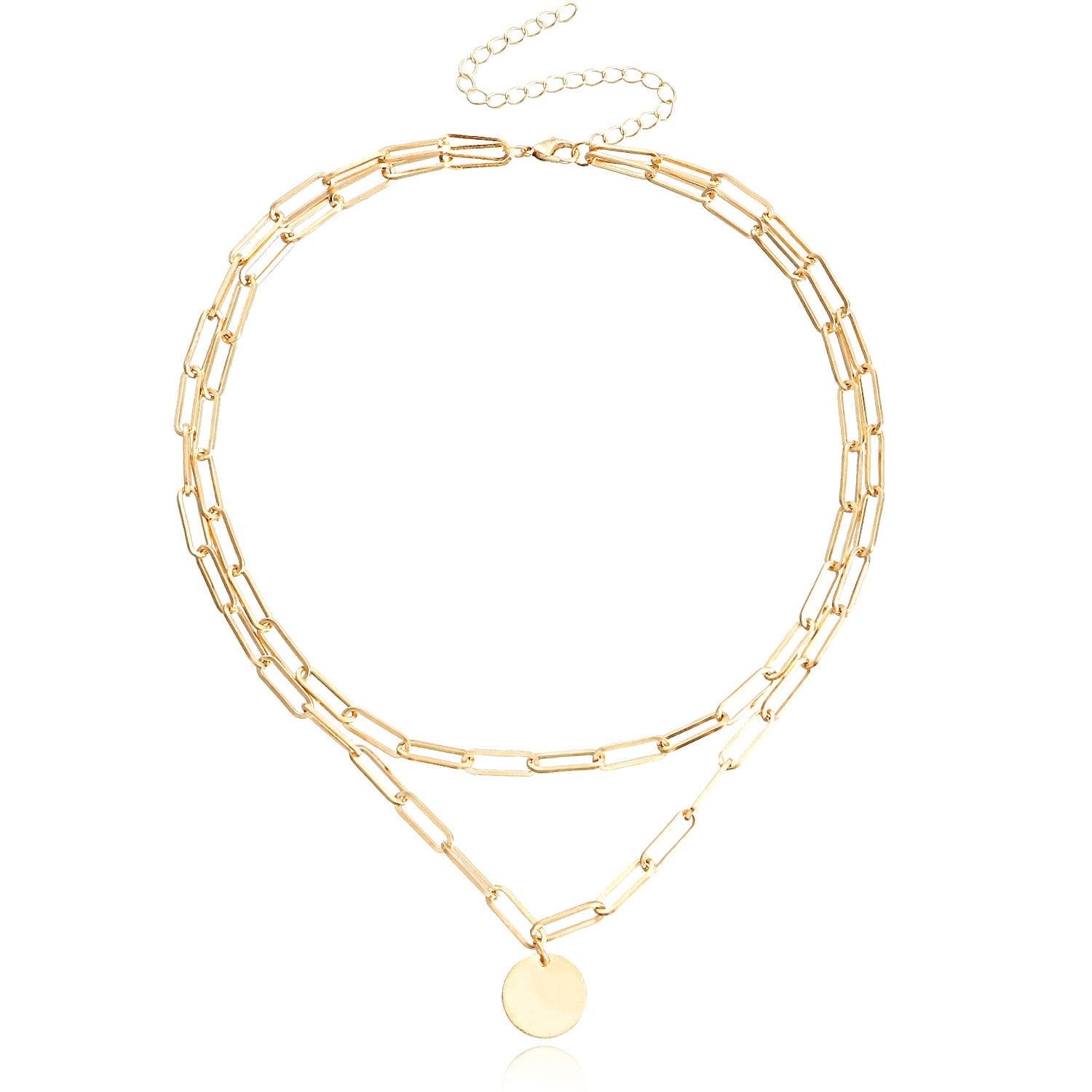 A Round Charm Layered Necklace is a beautiful piece of jewelry that features multiple strands of delicate chains, each adorned with a round charm. The charms may be made of different materials, such as metal, gemstones, or glass, and may feature various designs, such as patterns, initials, or symbols. The multiple layers of the necklace give it depth and texture, creating a stunning look that is perfect for dressing up or adding a touch of elegance to everyday outfits. The adjustable length of the necklace allows for a customized fit, making it a versatile piece that can be worn by women of all ages and styles. This charming necklace is sure to become a cherished addition to any jewelry collection.