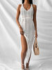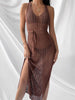 Made from a knitted fabric, this beach dress has a soft and lightweight texture that is comfortable to wear. The hollow out design adds a touch of femininity to the dress while keeping it breezy and cool in hot weather. The dress features a slit on one side, giving it a flowy and effortless feel.