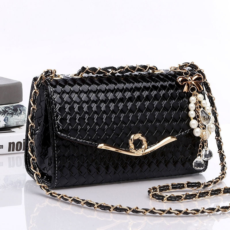 The bag comes with a chain shoulder strap that adds a touch of elegance to the design. The strap is adjustable, making it easy to wear the bag over your shoulder or across your body, depending on your preference.
