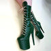Super high waterproof platform lacing boots are a type of footwear designed for pole dancing, suitable for nightclubs and performances. These boots feature a high platform sole that extends under the ball of the foot and heel, providing extra height and stability during pole dancing movements.