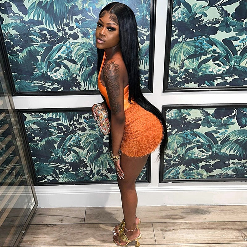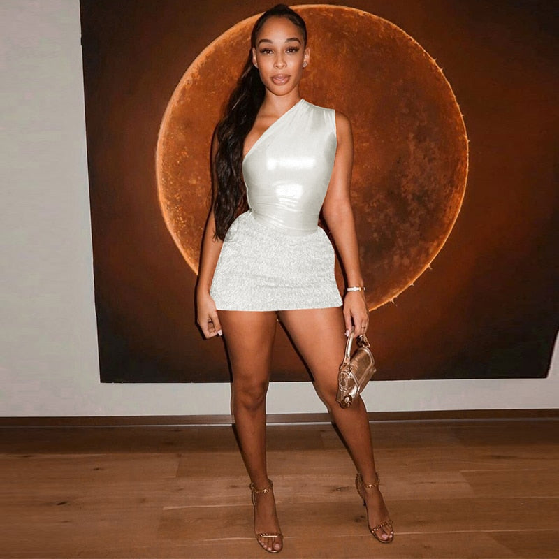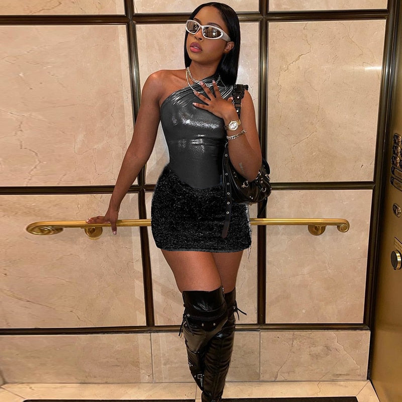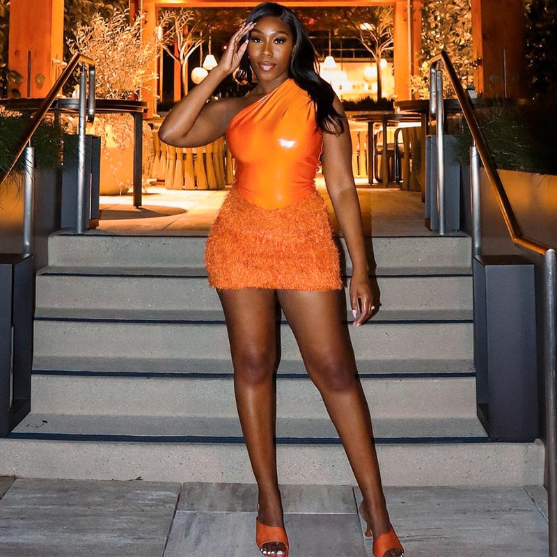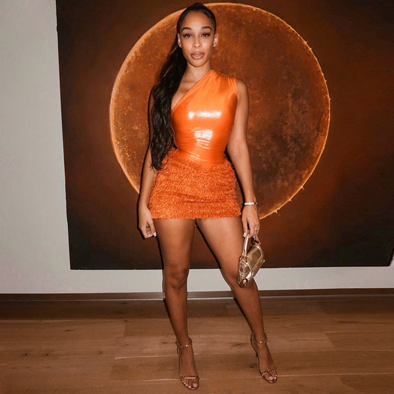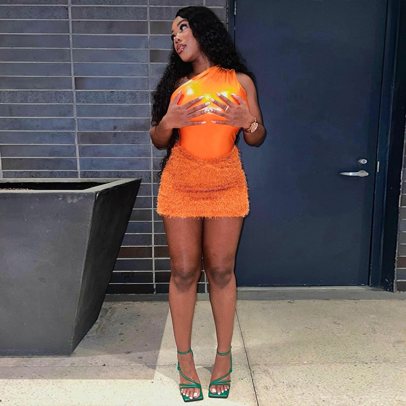 This outfit is perfect for a night out on the town, a casual summer day, or any occasion where a chic and trendy look is desired. The Tank Tops Bodysuit Mini Skirt Two Piece Sets Outfit is versatile, allowing the wearer to mix and match the pieces with other items in their wardrobe to create a variety of different looks. Overall, this outfit is a fashionable and fun choice for anyone looking to make a statement.