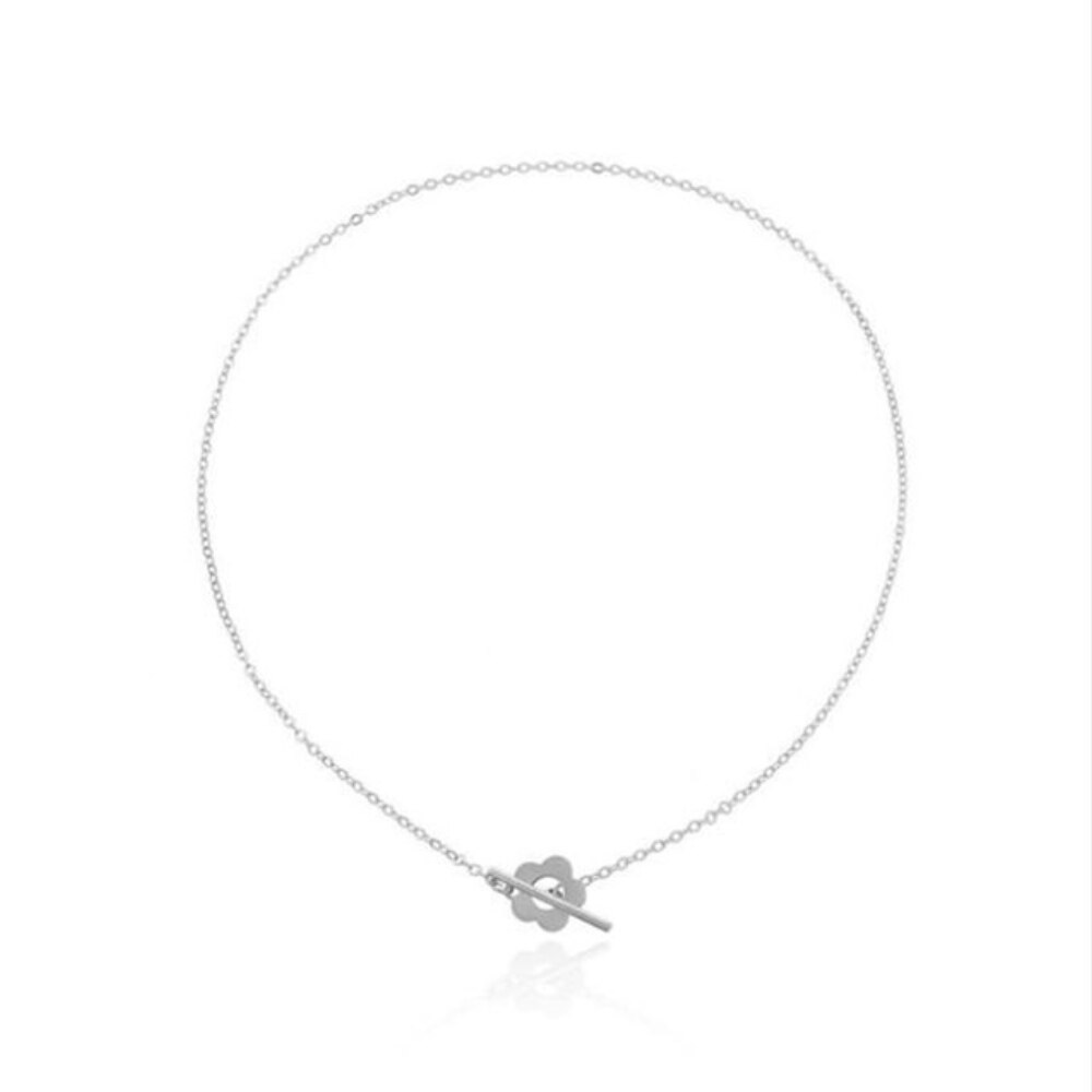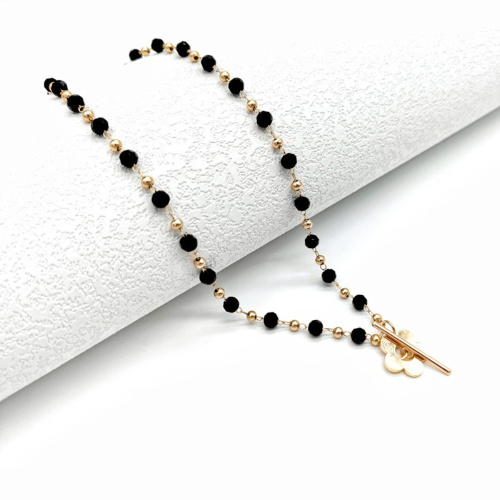 A Temperament Black Rhinestone Crystal - Metal Flower Necklace is a fashionable and elegant piece of jewelry that combines the classic beauty of metal flowers with the sparkling glamour of black rhinestones. The necklace features a metal pendant in the shape of a flower, decorated with black rhinestones that glisten in the light. The pendant is suspended from a delicate metal chain, making it lightweight and comfortable to wear. The black and silver color scheme of the necklace gives it a timeless and sophisticated look, making it a versatile accessory that can be dressed up or down. The delicate and intricate design of the metal flower and rhinestone accents add a touch of femininity and glamour to any outfit, making this necklace a great choice for special occasions or for everyday wear. This beautiful and stylish necklace is sure to become a treasured addition to any jewelry collection.