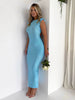 The Sexy Backless Round Neck Sleeveless Maxi Dress is a long dress that features a sleeveless design, a round neckline, and a backless cutout for a dramatic and alluring look. It is typically made from lightweight and flowy materials that drape beautifully and is often worn for formal events, parties, or as a summer dress.