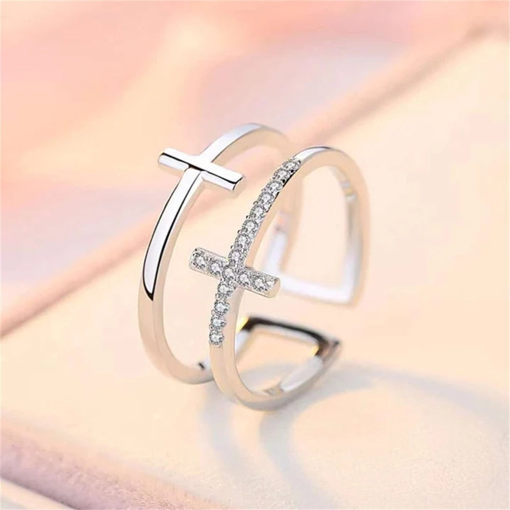 To My Daughter Pray Through It Double Cross Ring With Card for Women Girls Vintage Aesthetic Classic Zircon Cross Rings Jewelry