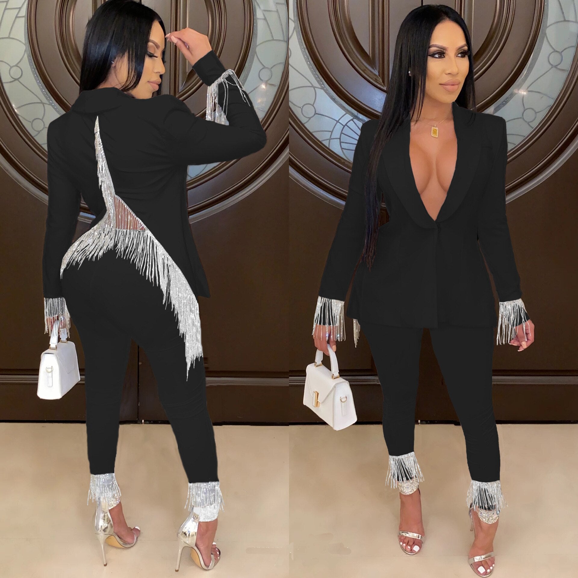Overall, the Tracksuit Two Piece Set Jacket Coat + Long Pants Tassel Outfit is a fashionable and comfortable outfit that is perfect for any woman who wants to stay stylish and trendy while still feeling comfortable and relaxed.