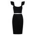 The bandage dress features a form-fitting design that accentuates the curves of the body and creates a streamlined and flattering silhouette. The sleeveless cut emphasizes the shoulders and arms, creating an elegant and sophisticated look.