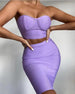 The Two Pieces Set Strapless Knee Length Rayon Bandage Dress is a stylish and trendy outfit designed for women. The set includes a strapless top and a knee-length skirt, both made from high-quality and stretchy rayon bandage material.