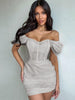 WannaThis Off The Shoulder Mini Dress Women Black Sequin Corset Ruched Prom Nightclub Bodycon Sexy Korean Fashion Women Clothing