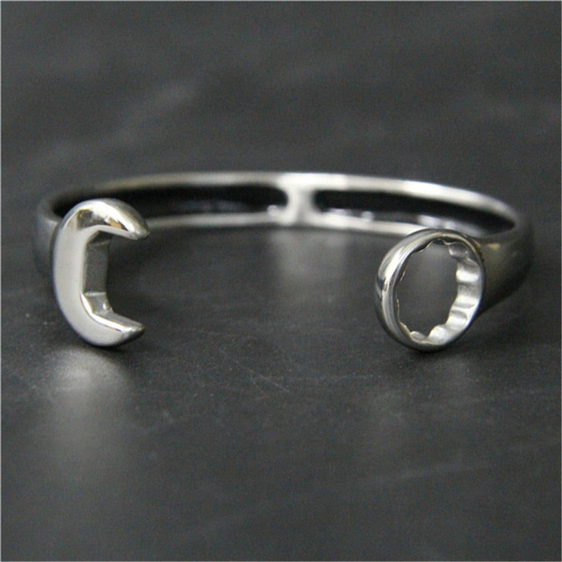 Make a bold statement with the Wrench Biker Bangle, crafted from high-quality 316L stainless steel. This unique spanner bracelet is perfect for any gearhead or mechanic who wants to show off their love for all things automotive. The cool and stylish design features a realistic wrench that wraps around your wrist, making it the perfect accessory for any biker or rocker. With its durable construction and masculine appeal, the Wrench Biker Bangle is a must-have for any man who loves to ride or work on motorcycles.